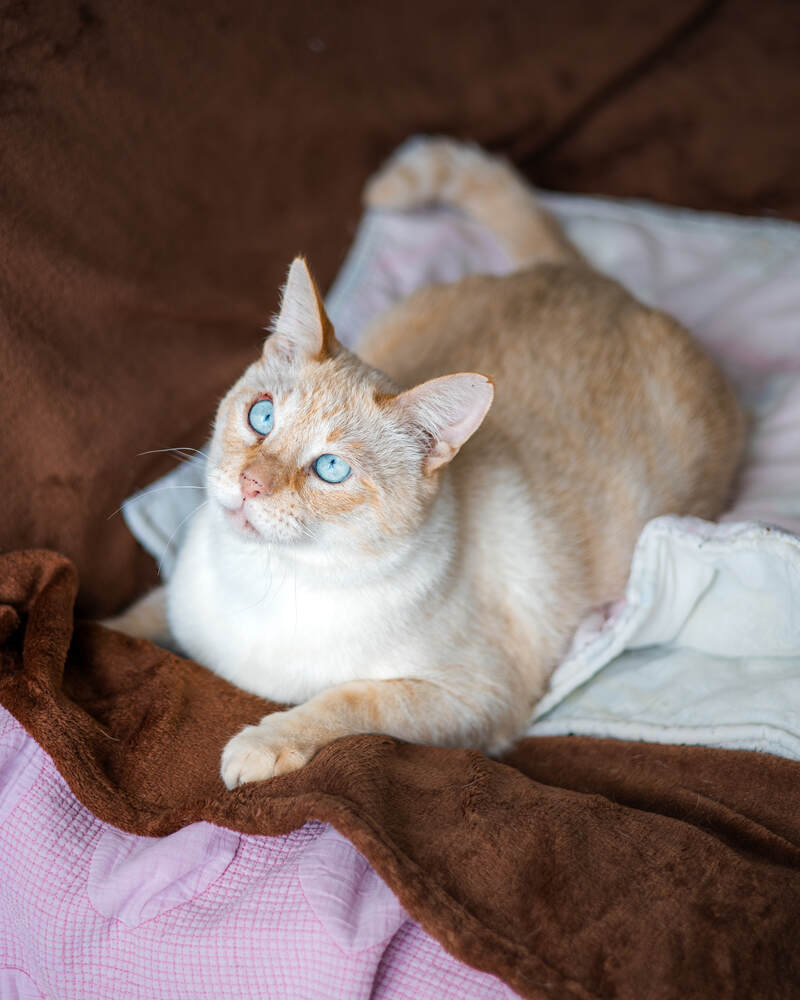 Este gatinho foi recolhido após ser encontrado com uma ferida na cabeça e um grande abcesso no focinho, que deitava pus e causava bastante desconforto. Recebeu os cuidados veterinários necessários e tem vindo a recuperar bem, sempre com um comportamento doce e confiante.